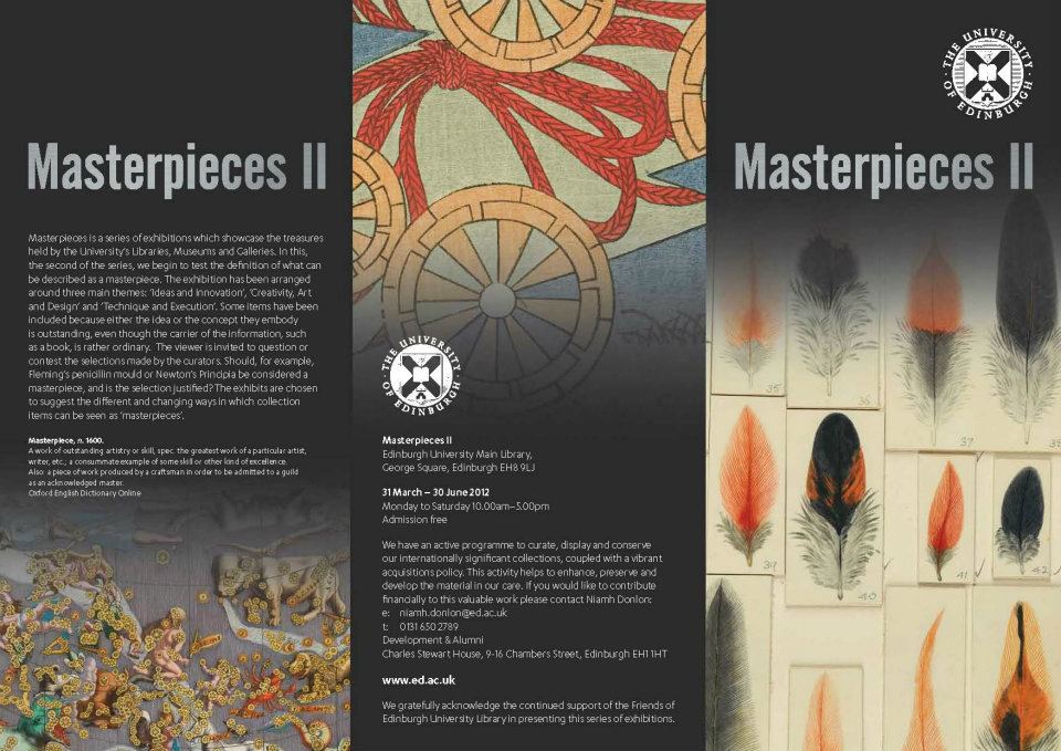 Masterpieces is a series of exhibitions which showcase the treasures held by the University’s libraries, museums, archives and galleries. This is the third and final exhibition in the series, in which the definition of a ‘masterpiece’ is pushed to its limits. Focusing on the overall theme of science and medicine, chosen items reflect the themes of ‘science as innovation’, ‘science as art’, and ‘science as statement’.