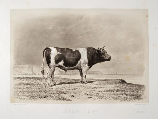 Emile Baudement, Les Races Bovines. Paris, 1861-2. Contains 87 magnificent heliogravure plates of European cattle breeds with maps showing their distribution.
